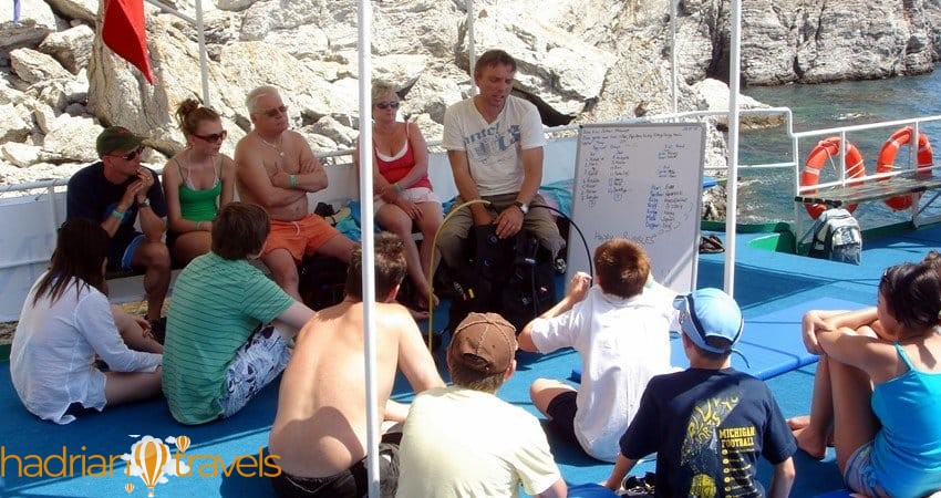 Дайвинг-тур из Белеке начнется с того, что вас заберут из отелей, в которых вы остановились в Белеке, на роскошных и комфортабельных автомобилях и доставят в порт Кемера. Когда вы прибудете в порт Кемера, вы сядете в ожидающую вас лодку и отправитесь к маршрутам, где вы будете нырять. Наши профессиональные команды предоставят вам общую информацию о дайвинге и научат вас языку жестов, который вы будете использовать под водой. В течение этого времени вы можете получить ответы, задав все интересующие вас вопросы нашим командам. После завершения информативной части вы будете готовы к погружению, надев все необходимое для дайвинга снаряжение.