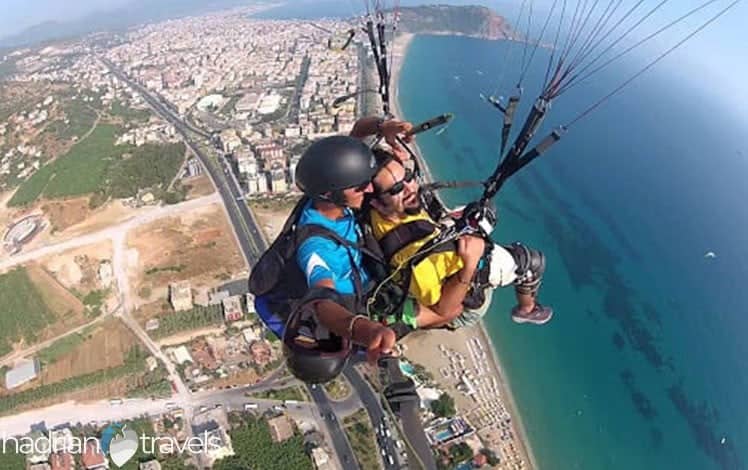 Полет начинается на холмах Хидиреллес или Юнус в горах Таурус и обычно заканчивается на пляже Клеопатры. Этот процесс занимает примерно 20-25 минут. Однако она может варьироваться в зависимости от направления и силы ветра или различных погодных условий. Высадившись на пляже Клеопатры, вы также сможете насладиться красотой пляжа, моря и солнца. После завершения тура вы можете быть уверены, что мы подбросим вас до отелей, где вы проживаете или останетесь с вашим автомобилем.