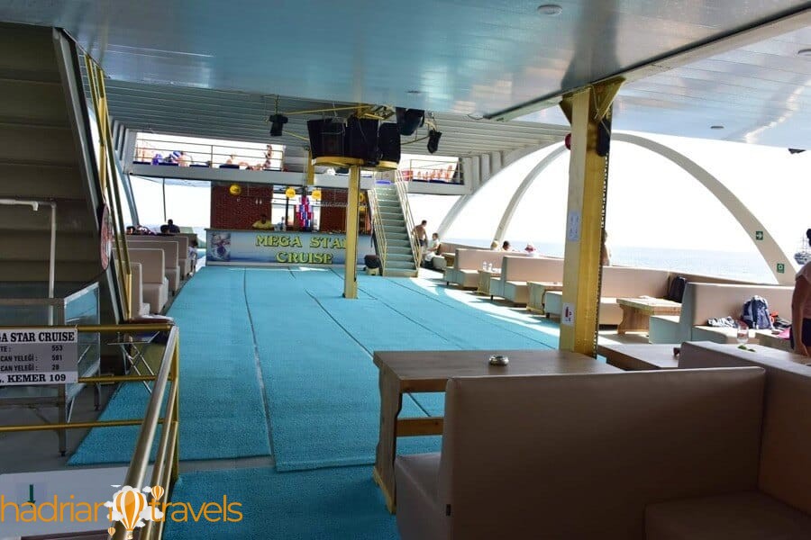 Тур на яхте Mega Star Boat в Анталии начнется с того, что мы сначала доставим вас на лодке Mega Star, которая стоит на якоре в порту Анталии. забрать вас из ваших отелей или пунктов трансфера в Анталии. Профессиональные гиды и наши команды встретят вас на лодке. Наши команды предоставят вам краткую информацию о Mega Star Boat и проинформируют вас о маршруте тура. Позже вы отправитесь в Средиземное море на этой лодке вместимостью 600 человек. Вы посетите залив Фаселис, залив Порто Сеневиз и залив Олимпос на лодке. Во всех этих бухтах будут перерывы на определенный период времени, чтобы вы могли насладиться морем, песком и солнцем.