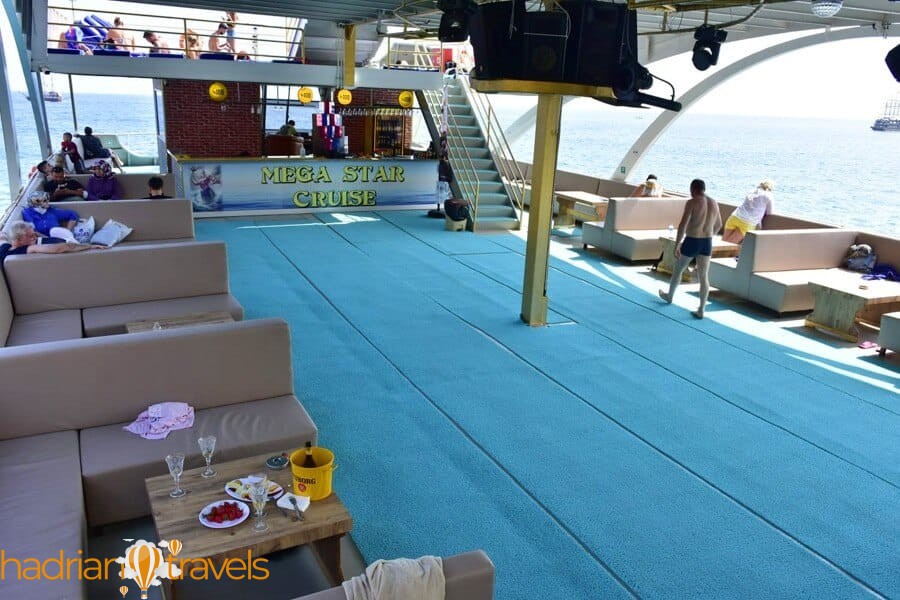 Стоимость лодочного тура Mega Star в Анталии составляет 25 долларов. В стоимость яхт тура Mega Star входят