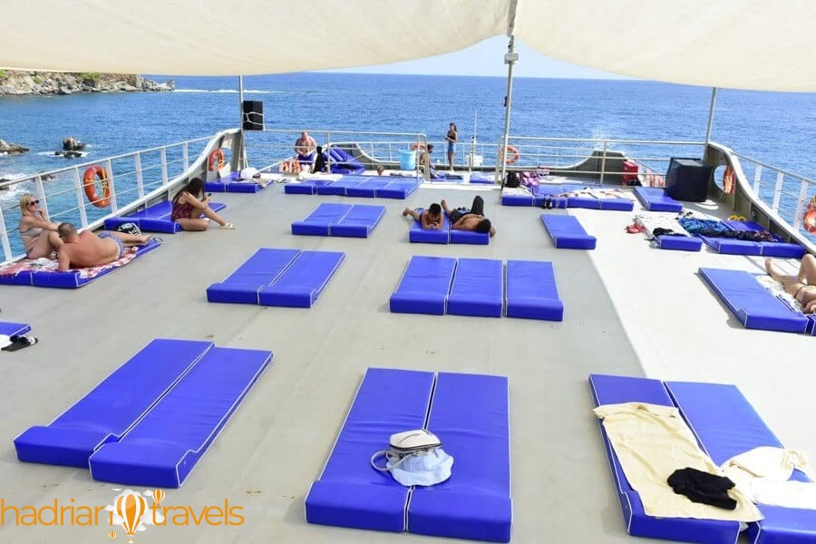 Последней остановкой лодочного тура Mega Star в Анталии является залив Олимпос. Залив Олимпос — это залив, принадлежащий древнему городу Олимпос, одному из самых больших и могущественных древних городов ликийской цивилизации. Встав на якорь в этой бухте, вы сможете посетить древний город и насладиться природными красотами. После этого вы снова отправитесь на лодке в сторону гавани Анталии. Когда вы прибудете в порт, мы оставим вас в отелях, в которых вы остановились в Анталии, с нашими автомобилями, ожидающими вас, и мы завершим тур.