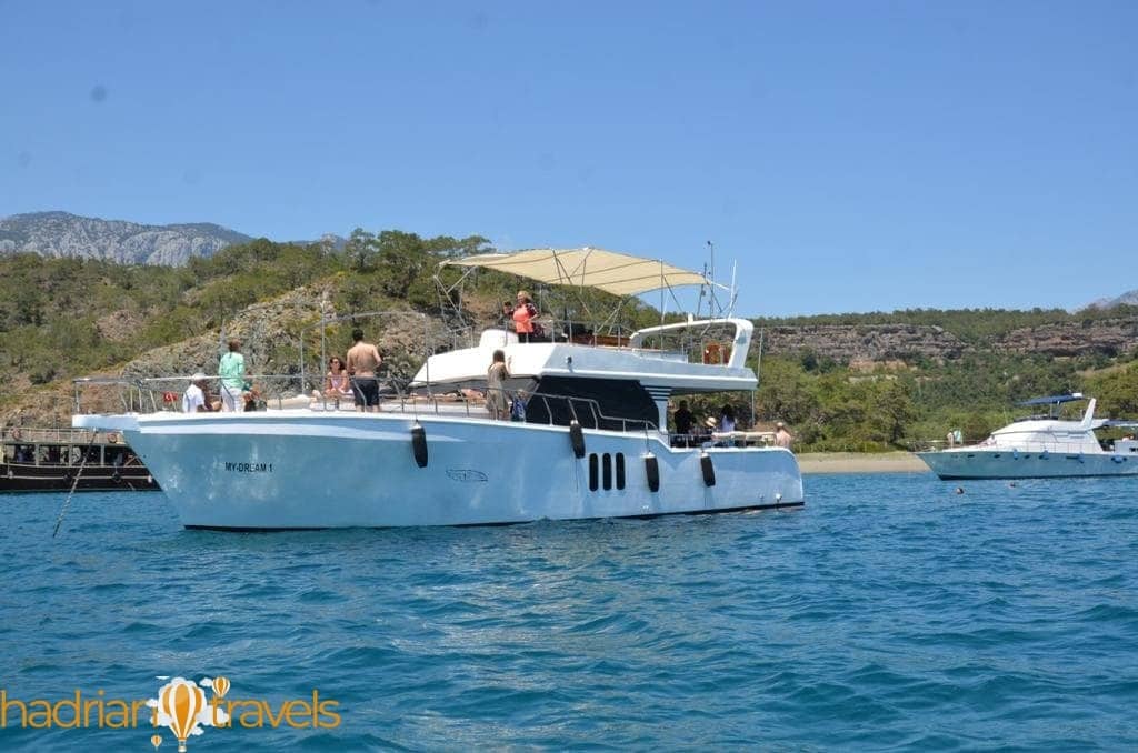 Во время тура вы посетите множество разных бухт и заливов. В этих регионах вы можете наслаждаться водами и солнцем Средиземноморья в любое время. Учитывая, что в полдень во время поездки вы будете голодны, мы предложим вам возможность вкусного обеда. Меню обеда включает в себя все виды блюд, от вкуснейших рыбных рецептов до вариантов фаст-фуда.